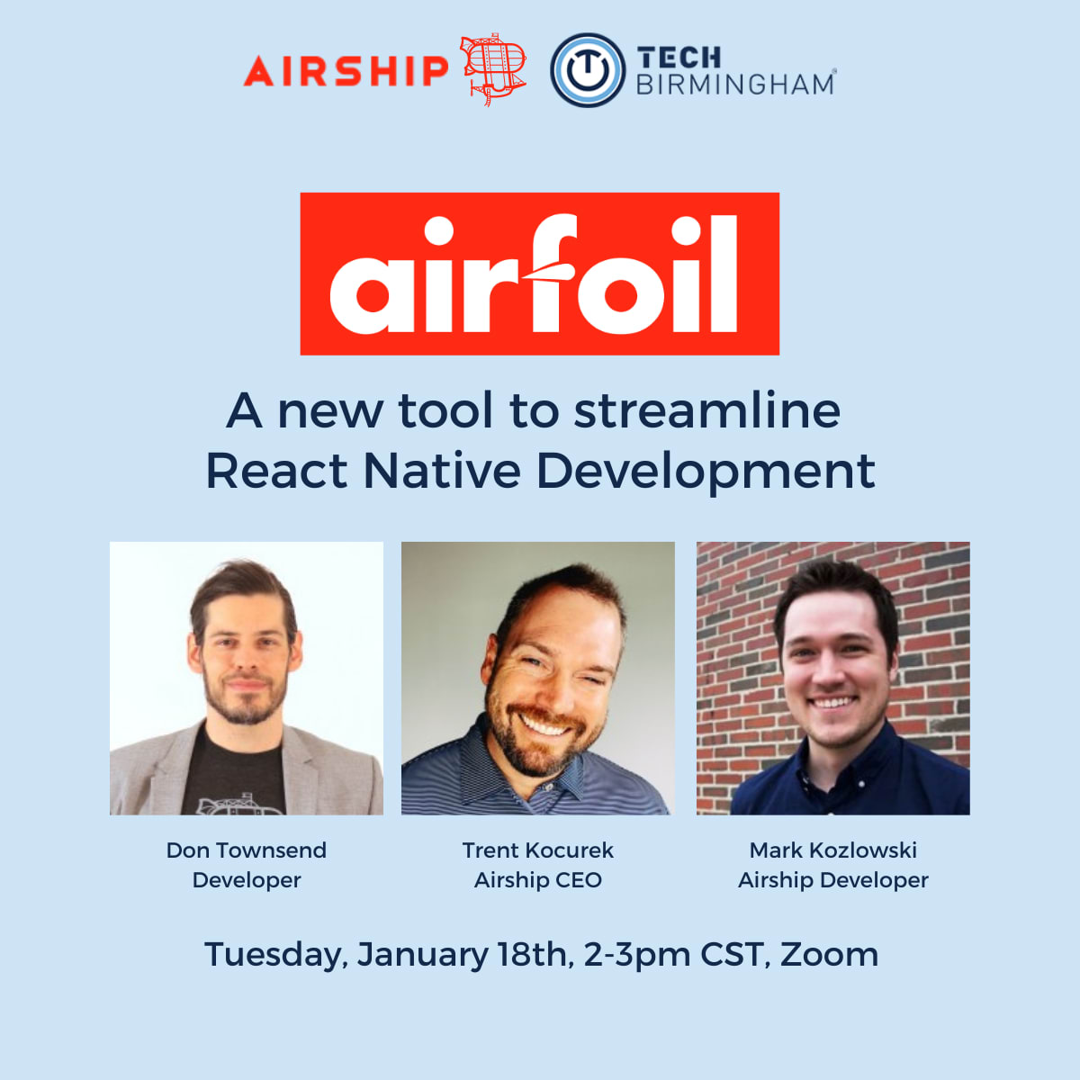 React Native developers can spend days on time-consuming, annoying, and repeatable tasks that are great candidates for automation. Trent Kocurek (Airship CEO), Mark Kozlowski (Airship Developer), and Don Townsend (Developer) of Birmingham, AL, have created a tool called Airfoil to automate and streamline React Native development. The Airfoil tool is a “swiss-army-knife” of convenience features that you'll learn about - read more here!