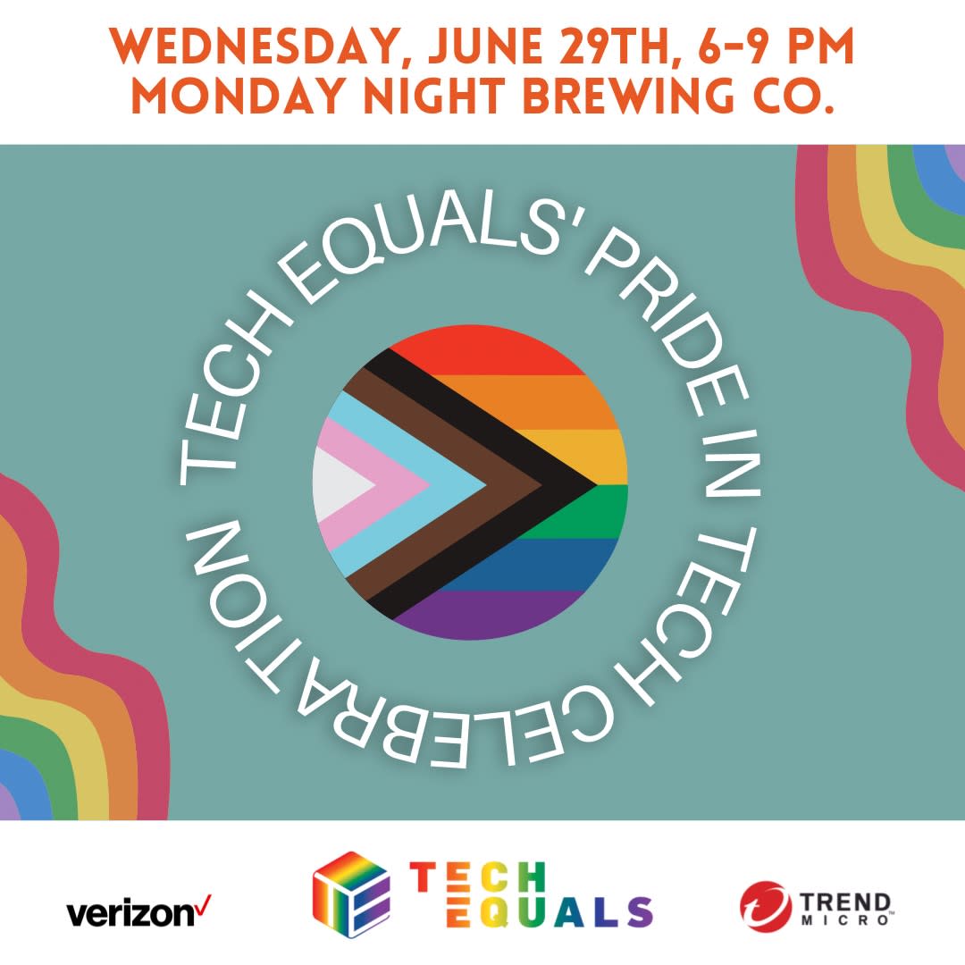 Happy Pride Month!! Tech Equals will host a Pride in Tech celebration Wednesday, June 29th at Monday Night Brewing Co! Members and allies of the LGBTQ+ community welcome. Incredible thanks to Verizon and Trend Micro for supporting this event.