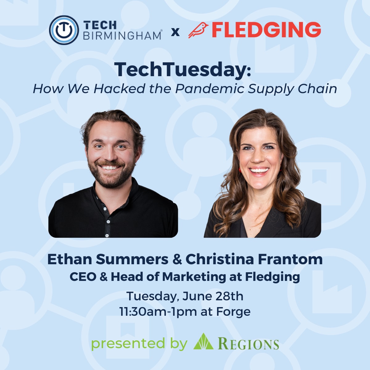 The worldwide supply chain continues to be affected by challenges relating to the COVID-19 pandemic, including delays and disruption. Experts now identify supply chain turmoil as the greatest threat to their companies' growth and their countries' economies. Fledging, a consumer electronics startup out of Birmingham, AL has reimagined their supply chain strategy to ensure business continuity and growth for the future and are excited to share their lessons learned and proven strategies with TechBirmingham.
