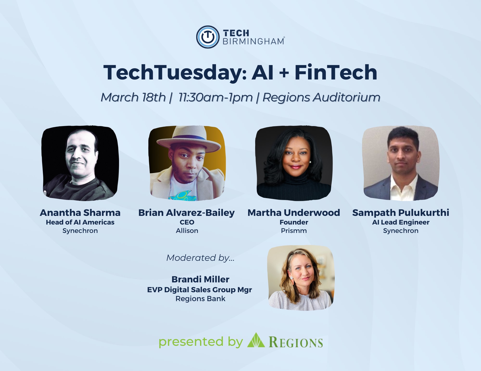 Thanks to our host and presenting sponsor Regions Bank who makes TechTuesday possible! And thank you to our videography partner Digital Motion Event Services for capturing our TechTuesdays.